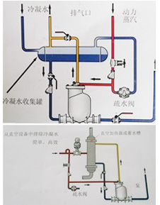 通常冷凝水可以通過疏水閥很方便地排出設(shè)備,進(jìn)入冷凝水排放系統(tǒng),如果冷凝水已經(jīng)被污染,則應(yīng)該直接排放掉;如果沒有污染,可以將其回收到鍋爐給水箱以利用冷凝水含有的熱量,這樣同時(shí)也節(jié)省了水和水處理的費(fèi)用。有時(shí)用汽設(shè)備內(nèi)部會(huì)產(chǎn)生真空,這樣會(huì)影響冷凝水的排出,從而影響蒸汽換熱效率,這時(shí)冷凝水就需要用泵壓出去。